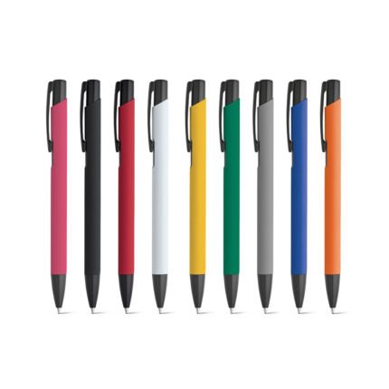 Esferográfica em ABS com grip e acabamento brilhante