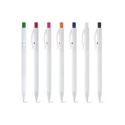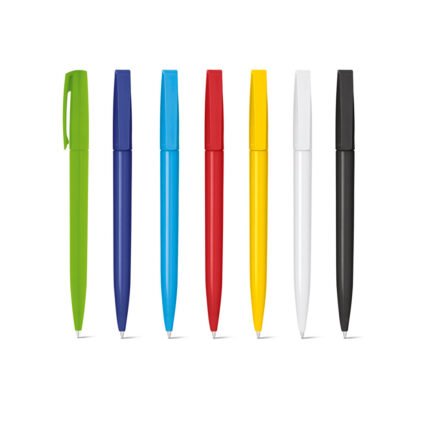 Esferográfica em ABS com acabamento brilhante e escrita em azul
