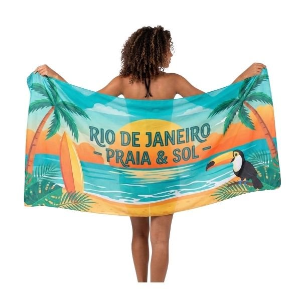 Canga personalizada confeccionada em poliéster, leve, de secagem rápida e excelente definição de cores. Permite estampa sem limite de cores, garantindo liberdade criativa para campanhas, ações promocionais e eventos. Ideal para praia, piscina e ativações de marca com alto impacto visual. Medidas: 100 x 70 cm.