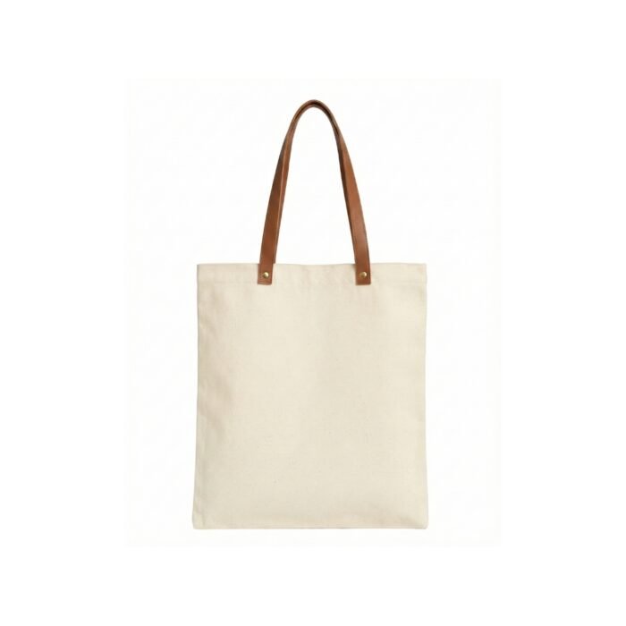Ecobag confeccionada em algodão, com design moderno e acabamento diferenciado. Possui alças em couro sintético fixadas com rebites niquelados, garantindo maior resistência e um visual sofisticado que valoriza a personalização da marca. Ideal para uso diário, eventos e ações promocionais com proposta sustentável e premium. Medidas: 34 x 40 cm.