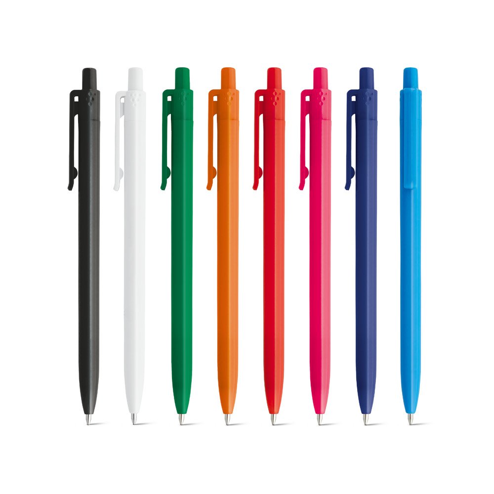 Esferográfica em ABS com acabamento brilhante, leve e resistente para uso diário. Possui escrita azul com alcance de até 1,5 km, garantindo boa durabilidade e desempenho. Produto certificado conforme a Portaria Inmetro nº 423 de 8/10/2021, oferecendo mais segurança e conformidade para ações promocionais e corporativas. Medidas: ø9 x 140 mm.