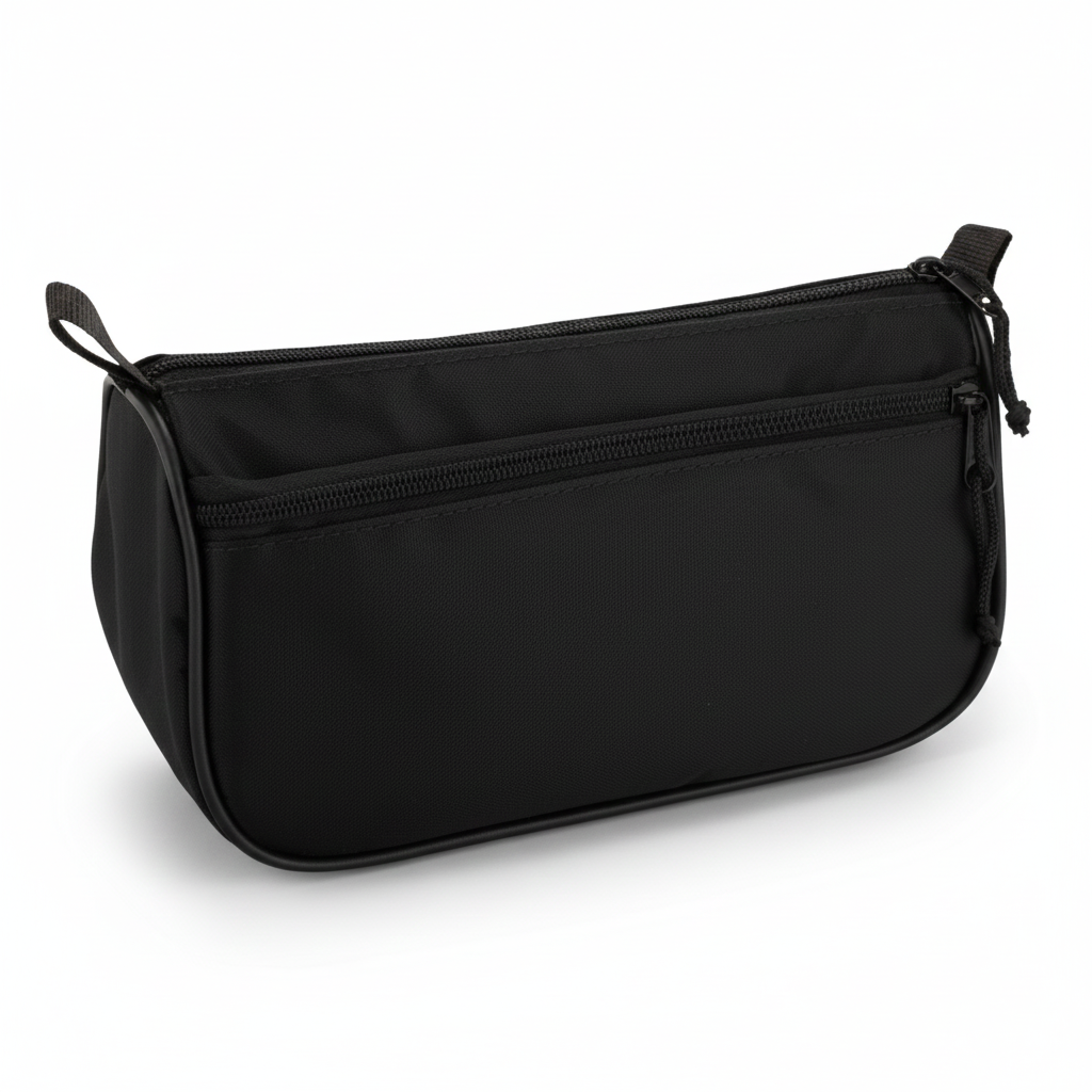 Necessaire unissex em nylon 600, resistente e funcional, ideal para uso diário, viagens e ações promocionais. Possui bolso frontal com zíper que facilita a organização dos itens e design compacto que otimiza o espaço sem perder praticidade. Um modelo versátil, com ótimo acabamento e excelente custo-benefício.